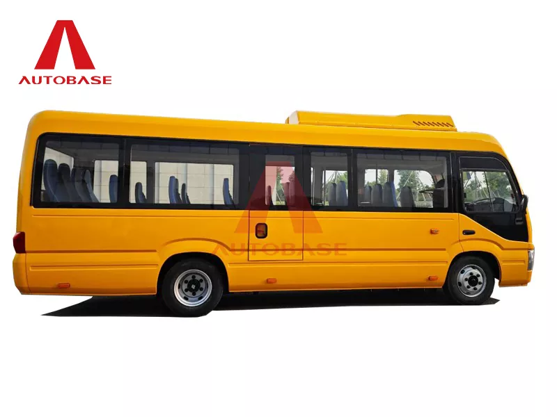 ج: تتميز الحافلة بتصميم مدمج وواسع ويبلغ طولها الإجمالي 7,250 مم (7.2 م) وعرضها 2,240 مم. تتميز بتصميم مقاعد 2+1 مع سعة جلوس إجمالية تصل إلى 22 راكبًا بالإضافة إلى السائق.